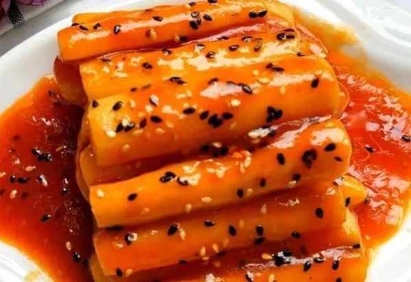 6.淋入鍋內料汁,再撒上熟黑白芝麻點綴。這道酸甜可口的糖醋山藥,好吃還不膩,一上桌大人小孩搶著吃。
