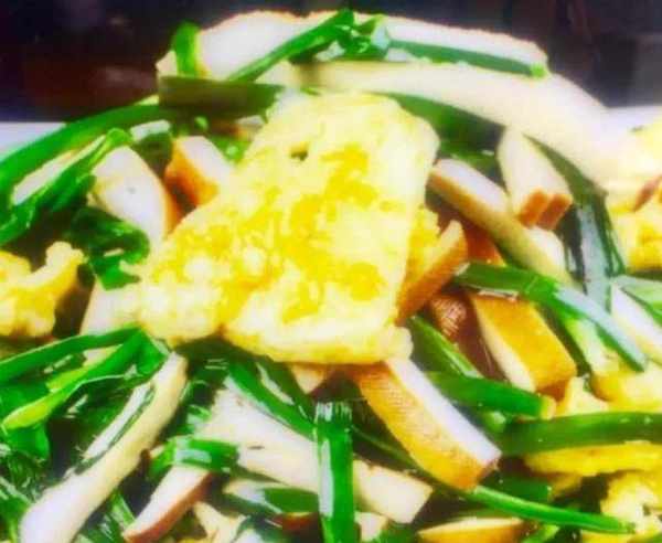 韭菜100克克,香幹200克,雞蛋4個,鹽,味精,生抽。