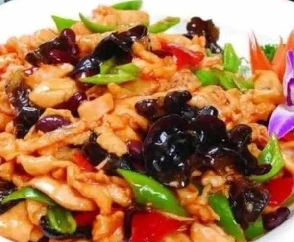 雞脯肉300克,紅椒,青椒,木耳,蔥薑蒜,泡椒,紅油豆瓣,醬油,鹽,香醋,白糖。