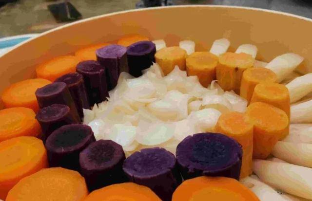2、將紫薯,山藥,紅薯,胡蘿卜蒸熟,再放入百合蒸3分鐘出鍋即可。