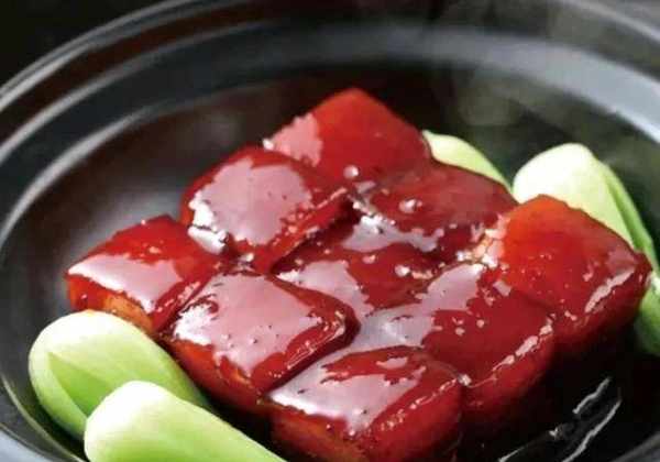 五花肉1000克,紅曲米,蠔油,冰糖,紅燒汁,冰糖,花雕酒,南乳汁,幹辣椒,桂皮,豆蔻,八角,香葉,香蔥,薑,油菜。