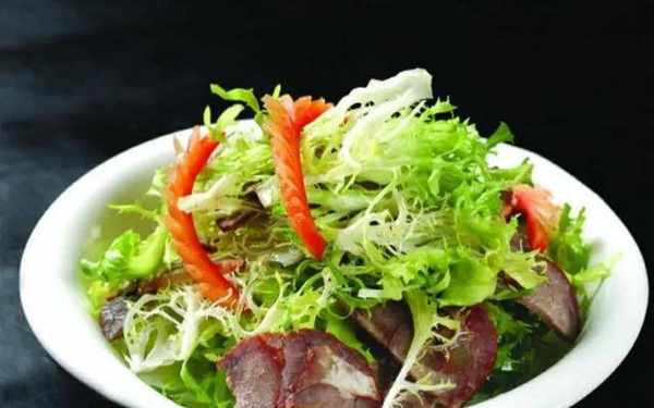 黃瓜洗凈拍碎切成塊放入盆中,苦菊切成段和大蒜切末放入盆中,熟醬牛切成片放入盆中,香菜切段放入盆中,加鹽,味精,白糖,生抽,陳醋,香油,辣鮮露拌均即可食用。
