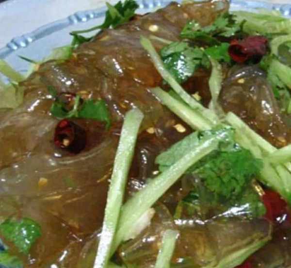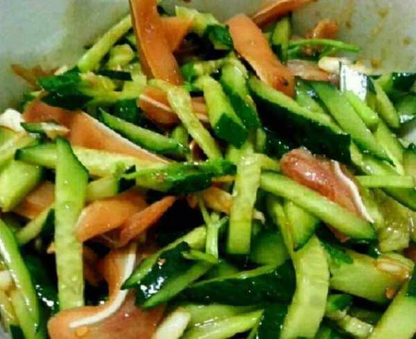 口味酸甜香辣,如果在配上的肉帽那就更加美味黃瓜大拉皮。