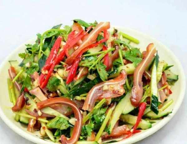 黃瓜洗凈切成絲,熟豬耳切成絲,香菜切段,凈蒜切成末一起放入盆中,加鹽,味精,陳醋,生抽,辣椒油,紅油拌均即可食用。