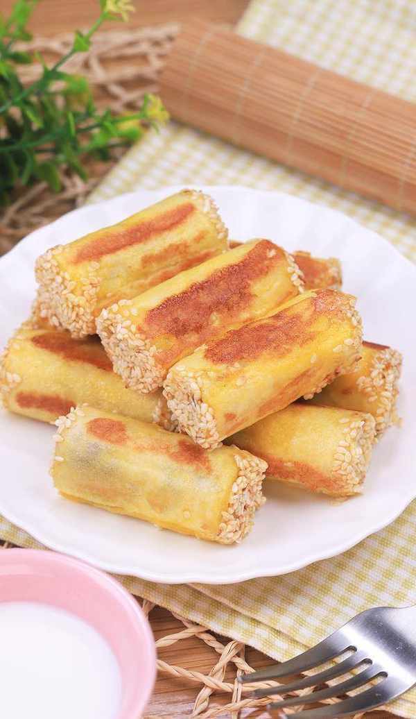 軟糯的山藥加上香甜的蜜紅豆,唇齒留香;吐司卷裹上滿滿的雞蛋液,兩端再蘸上足足的芝麻,上鍋一烙,香味四溢,早餐、零食就選它瞭!