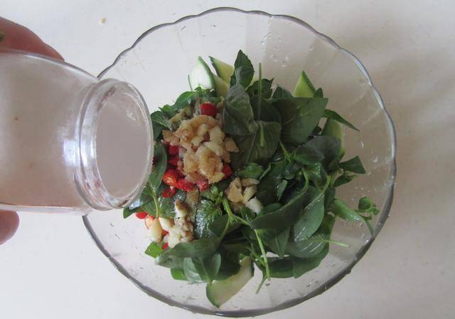 原料:水果黃瓜荊芥蒜紅椒生抽香醋安達露西食用油橄欖油鹽