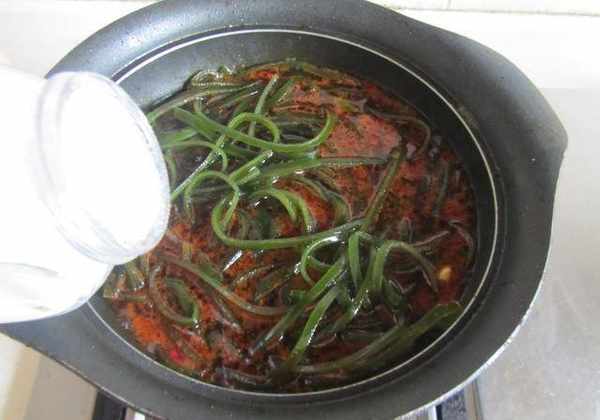 3.加入浸泡好的海帶絲,加蓋燉煮十分鐘;