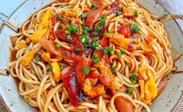濃濃的醬汁淋在面條上,酸甜開胃,一口氣幹掉兩大碗