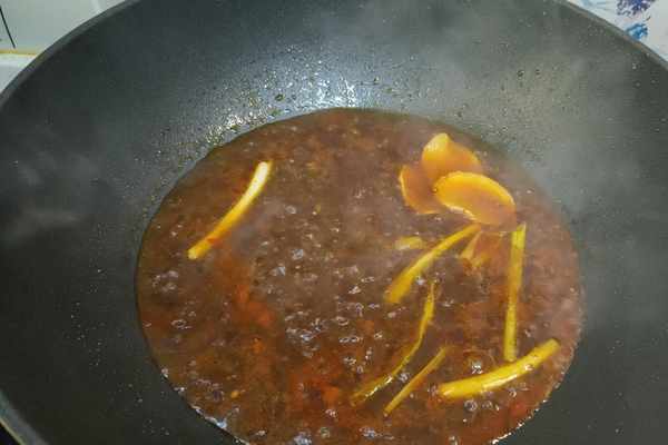 7、把鍋裡殘留的料渣打撈出來,然後加入水淀粉勾芡,把鍋裡的湯汁燒得黏稠一些。