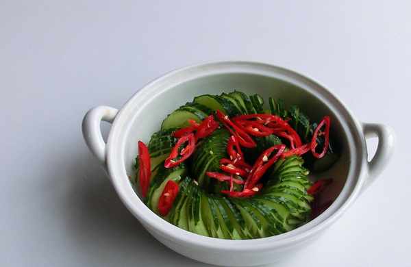 菜譜:蓑衣黃瓜主料:黃瓜1根,小米椒1個。