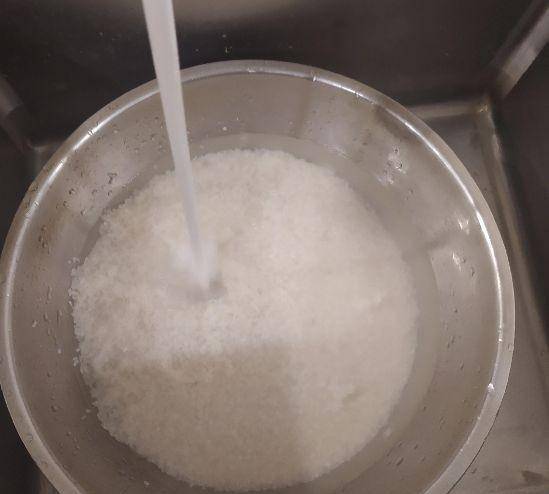 就是把米洗幹凈,一般我們沖洗順時針攪拌,然後輕搓幾次洗米水到掉,反復兩次就可以瞭,沖洗過多米裡的營養成分會大量流失,煮出來的米飯香氣也會減少。