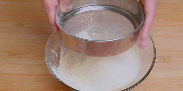 6:然後把混合好的面粉篩入到雞蛋液裡面