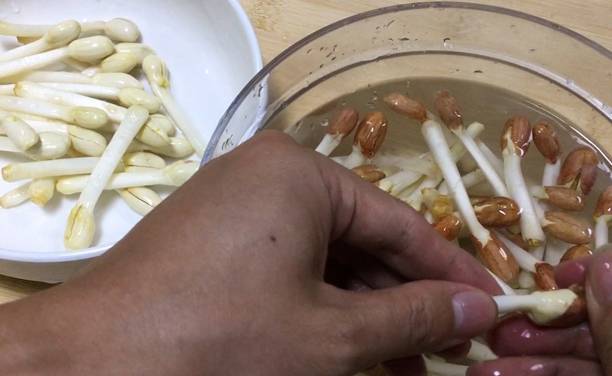 第二步:提前把花生芽用清水浸泡10分鐘,洗凈備用。