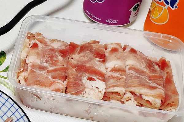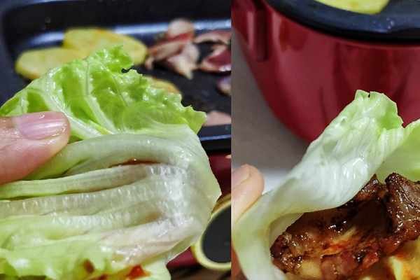 接著是桐爸喜歡的烤五花肉。話說桐爸平時不愛吃肥肉,隻吃瘦肉,但唯獨生菜包烤五花肉,他特別愛吃。五花肉切薄片,生菜提前洗幹凈瀝幹水,還要準備好蒜片和蒜蓉辣醬。