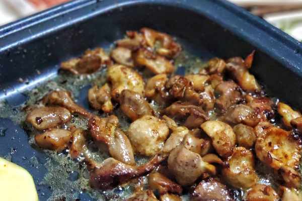 話說雞胗是臨時想起買的食材,還好沒錯過,簡直是一流的下酒菜。將雞胗清洗幹凈後切片,將雞胗倒入電鍋中翻炒至變色,倒入少許料酒和醬油翻炒,撒胡椒粉、辣椒粉等,繼續煮到完全熟透,看起來有些微焦就可以瞭。吃起來爽脆入味,再來點冰啤酒,特別過癮。