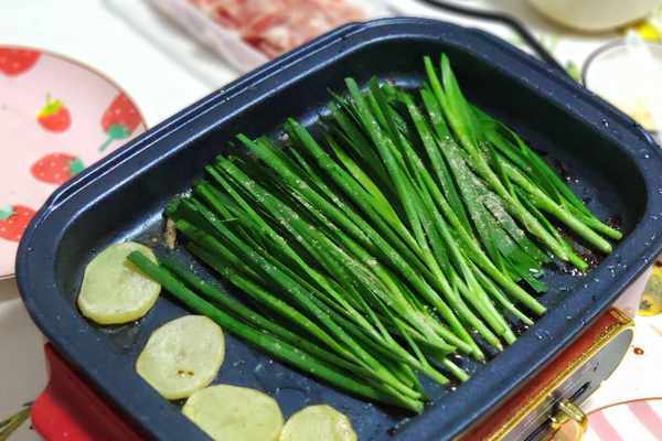 先吃肉後吃菜,最後輪到烤韭菜。想要韭菜好吃,要放多一點油。將韭菜整齊放入多功能鍋中,然後用刷子給上面刷上油,煎到一面熟瞭後翻面,掃上醬油或者鹽、撒胡椒粉、辣椒粉、孜然粉等,烤熟就可以吃瞭,無需烤太幹。不過這次的韭菜買得有點老,有點嚼不動的感覺,不過此時大傢都吃得很飽瞭,就沒有繼續烤瞭。剩下的韭菜就留著明天煎蛋吧。