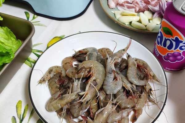 燒烤的蝦不需要很大隻,小一點拿來烤會更焦香。直接放入鍋裡,刷燒烤醬油,撒鹽撒胡椒粉辣椒粉,煎到兩面金黃。直接連殼嚼,你會發現蝦殼都是香酥的,特別好吃。