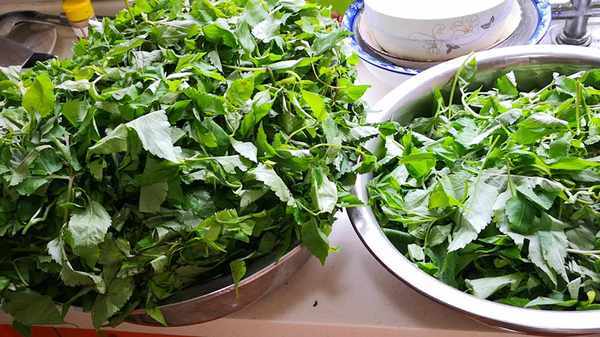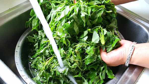 1.選取較嫩的婆婆針嫩芽,去掉老硬的枝梗,反復多沖洗幾遍後放入盆中,然後加入淡鹽水浸泡10分鐘。接著燒一鍋開水,水開後放入婆婆針焯燙一下,大約焯水1分鐘後,控水撈出婆婆針放到涼水中,繼續浸泡4個小時左右,中間換1~2次水。