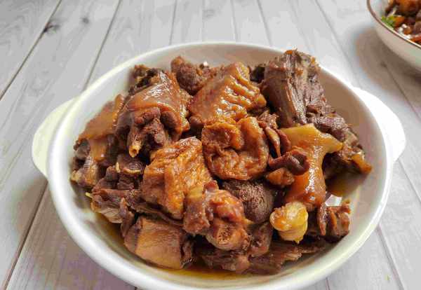 把豬皮燒一下,刮掉殘留的豬,下鍋焯水5分鐘,趁熱剔掉多餘的油脂,再清洗幹凈。起鍋燒油,放入冰糖炒出糖色後,倒入熱水,加入八角、桂皮、香葉、蔥結、薑片、生抽、紅燒醬油、料酒、甜面醬拌勻,再放入豬皮中火鹵煮20分鐘。