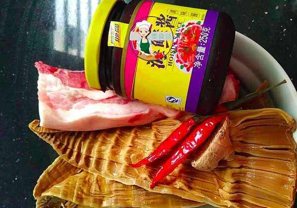 食材:筍幹、五花肉、小米辣、大蒜、生薑、海鮮醬。