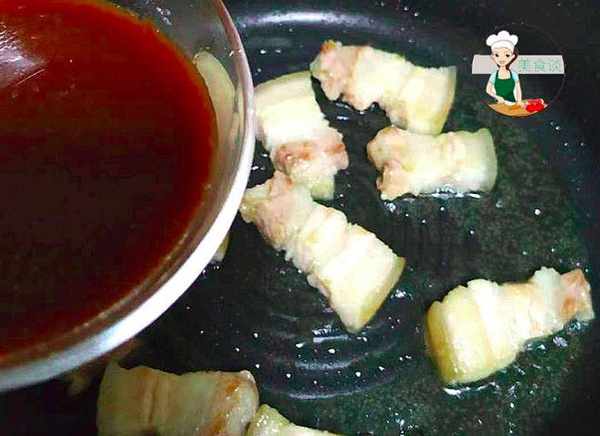 5、熱鍋涼油,下入五花肉煎。