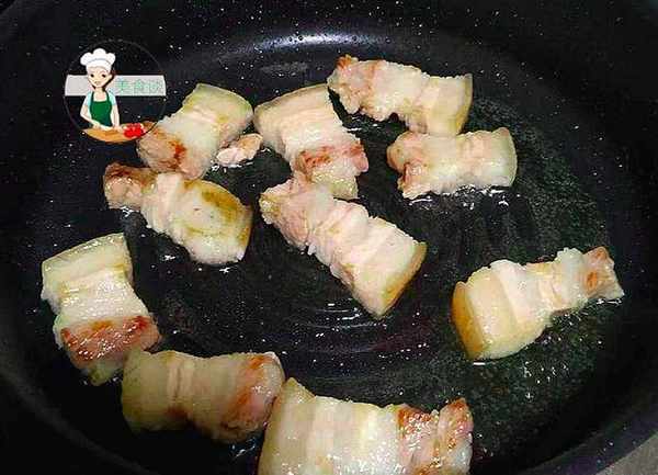 6、五花肉煎至微微焦黃出油的狀態。