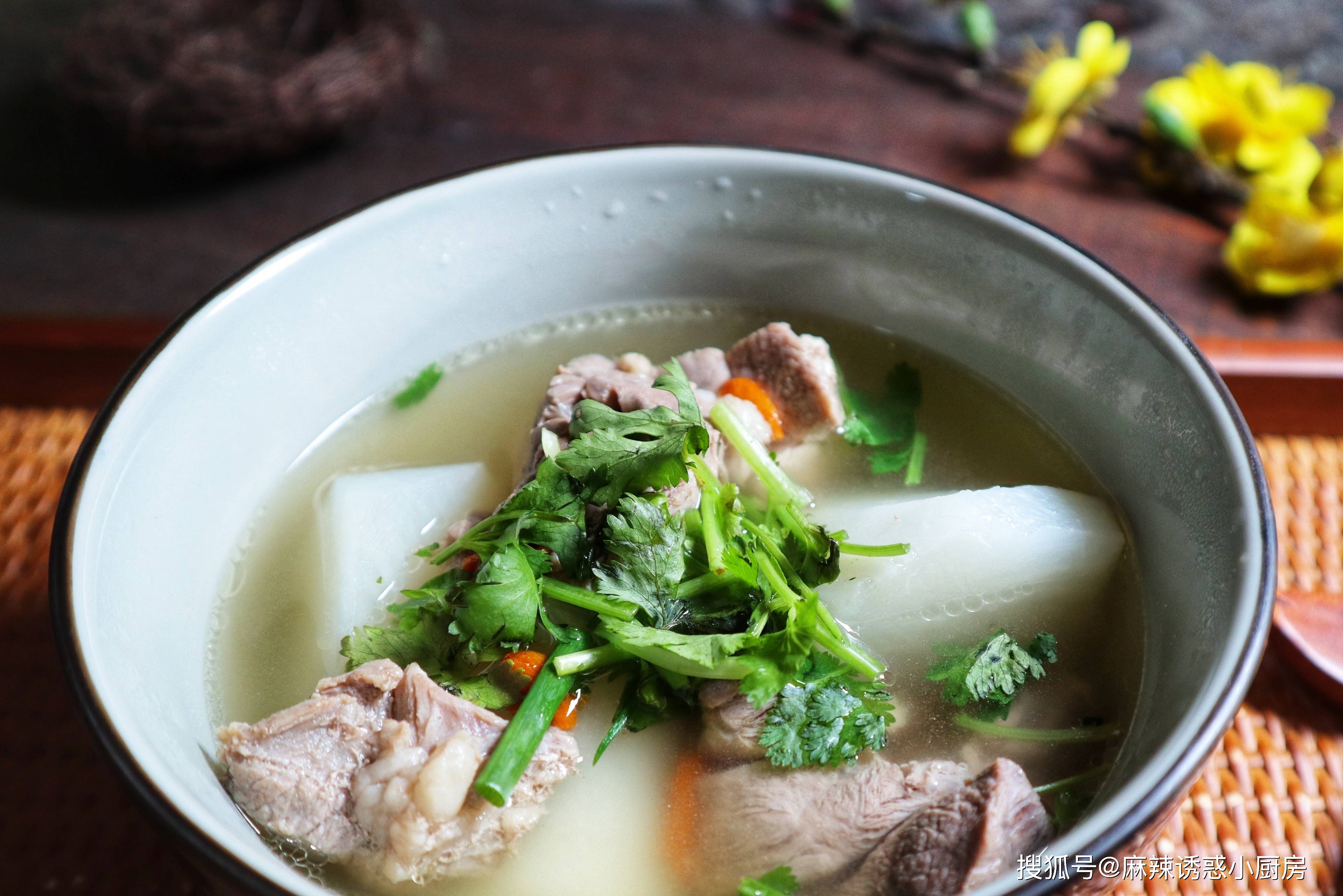 冬天,羊肉是一種很好的溫補佳品。它的蛋白質含量高於豬肉,鈣,鐵的含量同時高於豬肉和牛肉。但它的脂肪和膽固醇含量卻遠低於豬肉和牛肉。口感細嫩,甘而不膩。但它也有缺點,就是羊肉會自帶膻味,尤其是蒙古羊,膻味更重(南方人吃不習慣)。新疆的,或南方城市本地自養的膻味稍輕。所以我們在燉羊肉湯時,既要保持湯汁的香濃,也要把羊肉中的膻味盡量去除。