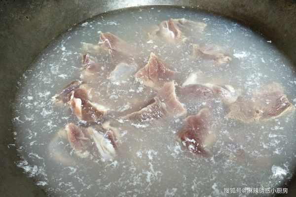 1浸泡:羊腩洗凈後浸泡花椒水中(1-2小時),去除羊腩大部分膻味。