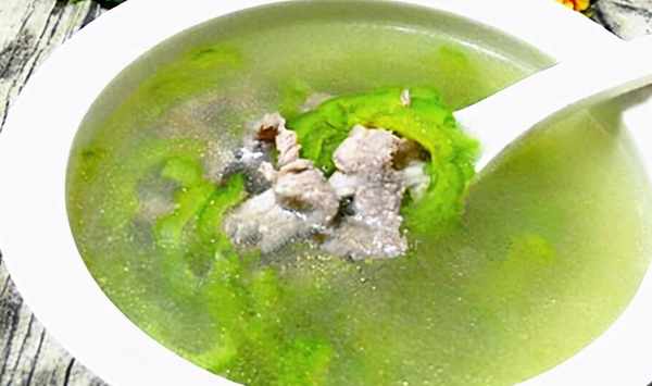 3將苦瓜塊與豬肉片放進煲內,加適量清水,大火煲20分鐘,再用小火慢煲2小時,加少許食鹽調味即可。