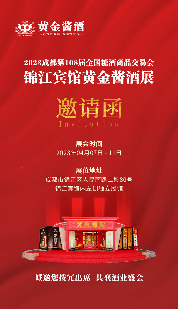 4月7日至11日,聚焦錦江賓館內黃金醬酒獨立展館,誠邀蒞臨品鑒,共建傳奇醬香品牌,共襄酒業財富盛宴!