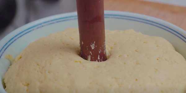 3.下手揉成面團,蓋上蓋子發酵到兩倍大。