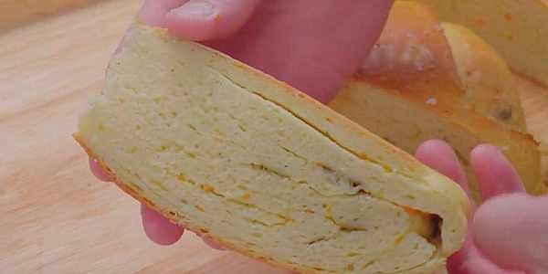 它的吃法也很多,大部分是把它做成發面食物,這樣吃著好消化,但因為是粗糧,所以口感很粗糙。不過現在也有解決辦法,那就是跟細面混合,粗細搭配,不僅口感上得到改善,營養也翻倍。粗細搭配之後吃著更好消化容易吸收。這次就粗細搭配來制作一道面食。這道面食很簡單,可以當做零食,也可以當做主食。表面顏色金黃,是先蒸再烤,看著就很有食欲。裡面有夾層,夾著胡蘿卜跟蔥花,口味微微咸,有一點味道,吃著不膩。