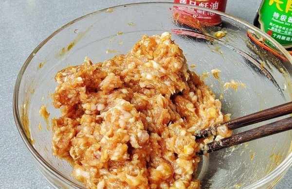 4、把剁好的肉餡放到碗裡面,加入醬油,蠔油,胡椒粉調味,先充分的攪拌均勻