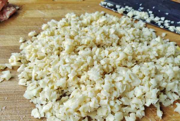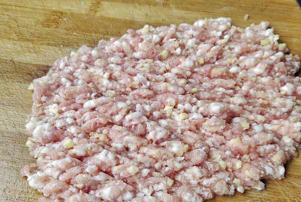 3、豬肉生薑也剁成末,要想這個餡做的比較鮮嫩,可以多來點薑,如果傢裡的孩子不愛吃薑,那麼擠一些新鮮的薑汁替換薑末