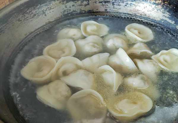 8、鍋裡坐水燒開,水開下做好的大餛飩煮熟,三開的餃子兩開的面,期間點兩次涼水,這樣做出來的面皮會更勁道些