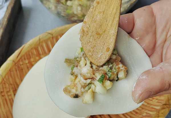 食材:餃子皮,豬肉,鮮筍,韭菜,酸菜,生薑,蝦皮,紫菜,香蔥,醬油,耗油,米醋,胡椒粉,香油