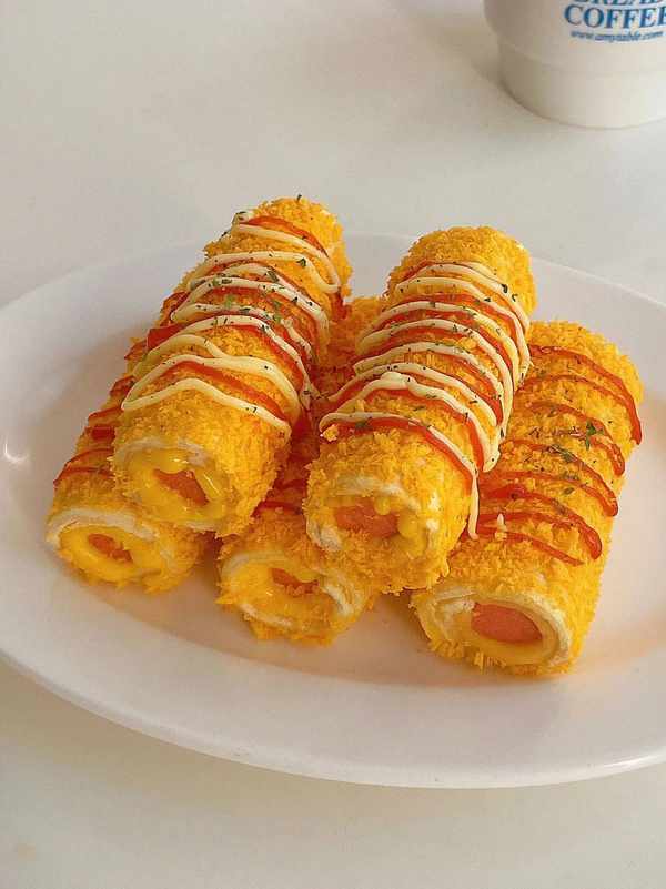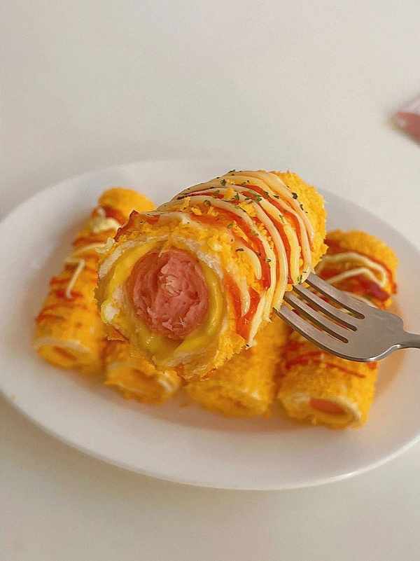 一口爆漿的芝士火腿吐司卷真的巨好吃!