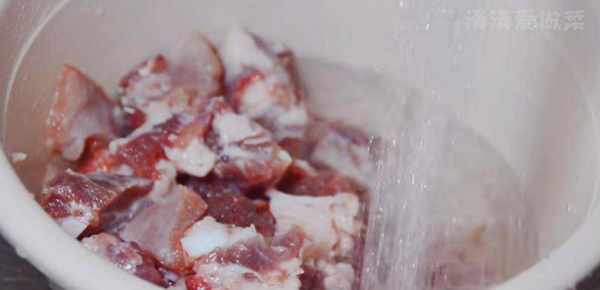 第一步:清洗肋骨。準備適量的排骨。買排骨時,我們盡量選擇新鮮的。把排骨放在盆裡,撒上適量的食用鹽。用流動的水沖洗排骨,用手去除排骨上多餘的血和水。這樣燉出來的排骨就不會有腥味瞭。摩擦一段時間後,倒出血液和水,然後用流動的水再沖洗兩次。