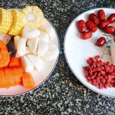 1.將所有食材洗凈,胡蘿卜切成小塊,玉米切成小塊,馬蹄鐵去皮清洗幹凈。加入紅棗、枸杞和山藥後,讓玉米、胡蘿卜、馬蹄和大骨頭燉一個小時,然後再加入。如果土豆容易變黑,那就等土豆加入後再去皮切成塊。
