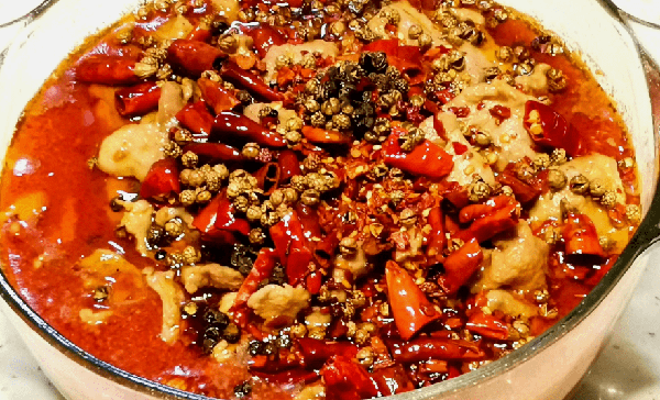 3)鍋中倒油,燒熱後加入蔥薑蒜、幹辣椒和花椒煸炒至香味出來。