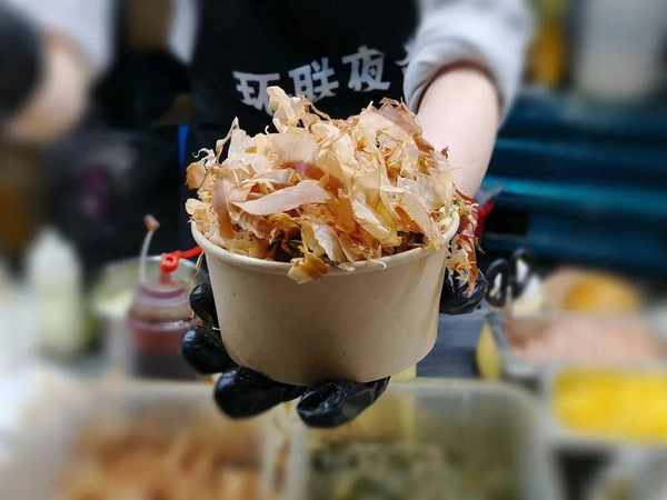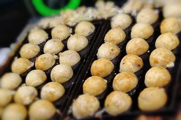 除瞭巨型章魚燒,還有滋滋啦啦冒著熱氣的章魚小丸子,也很好吃!他傢屬於熱門攤位,排隊的人會比較多。