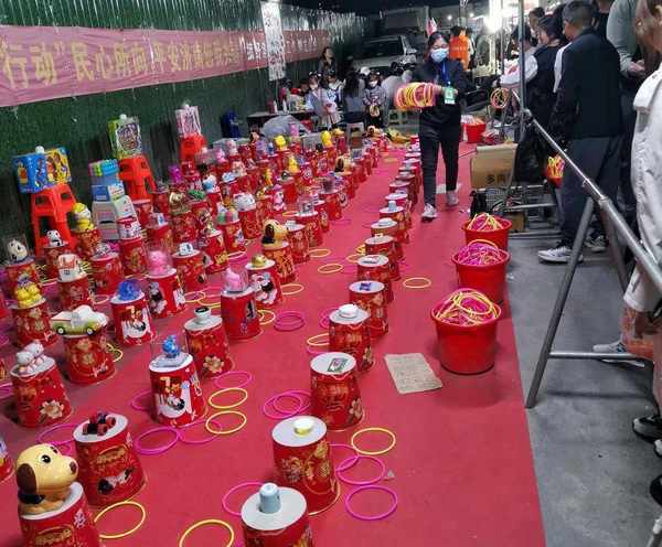 路過套圈、打靶的攤位,停下來觀看一會兒,湊一下熱鬧,看到總是套不進去的,還會手癢自己試一試,真是熱鬧非凡。