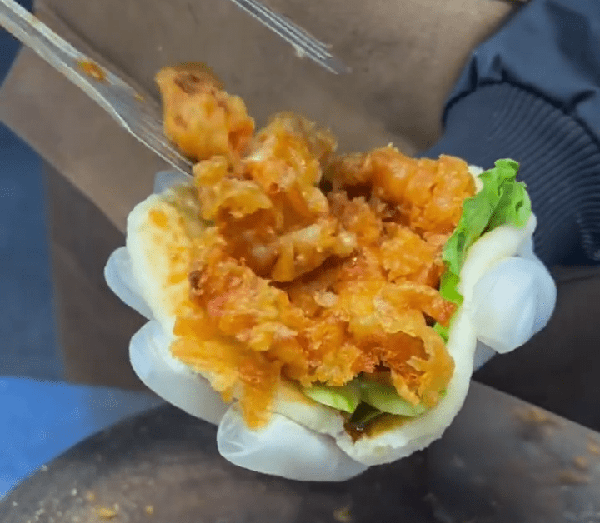 喜歡吃雞肉的朋友,覺得吃雞柳不過癮,來看看這個「大鵬炸雞饃 」吧!