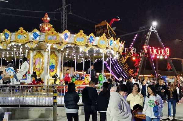 多種燈光閃爍又炫彩的遊樂設施歡快地唱著、轉著、搖擺著,引得小朋友們心裡直癢癢。這就是童年的歡樂,誰又能拒絕呢?