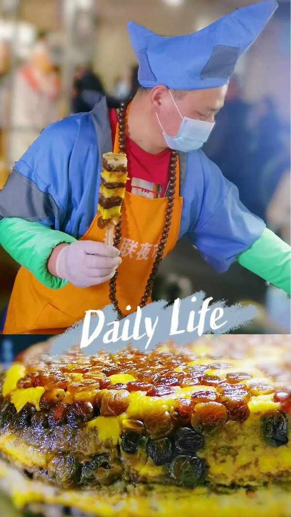喜歡糯嘰嘰小吃的朋友,還可以打卡「 濟公賣糕 」,穿著濟公服裝的攤主販售層層足料的切糕;「 胃大王奶蓋白玉小丸子 」上面厚厚一層海鹽芝士,香醇不膩;還有傳統的糯米糍粑、時令的青團、嵌著果脯的糯米棒……