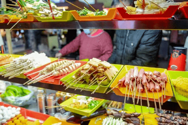 夜市上最火爆、最排場的莫過於小黑妮川味麻辣燙。葷素種類特別齊全,調料口味自己隨心搭配。