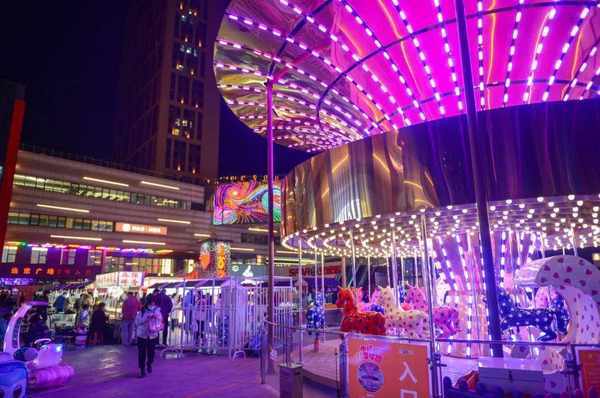 絢爛華麗的旋轉木馬在夜市廣場兒童樂園可是當之無愧的C位。大小朋友都忍不住爬到它的背上去翱翔。