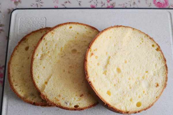 所有材料準備齊瞭,就開始動手做吧,先來烤一個蛋糕胚,蛋糕胚就用戚風蛋糕就行,一是口感松軟細膩,二是蛋糕體不會太軟,不容易埸陷。制作戚風蛋糕也是每一個新手的必經之路,相信大傢都能夠做得不錯瞭吧,即使是開裂瞭,也沒有關系,不影響蛋糕的成敗。但要記住戚風蛋糕一定要涼透瞭才能脫模,著急趁熱脫模,蛋糕會不成形的。