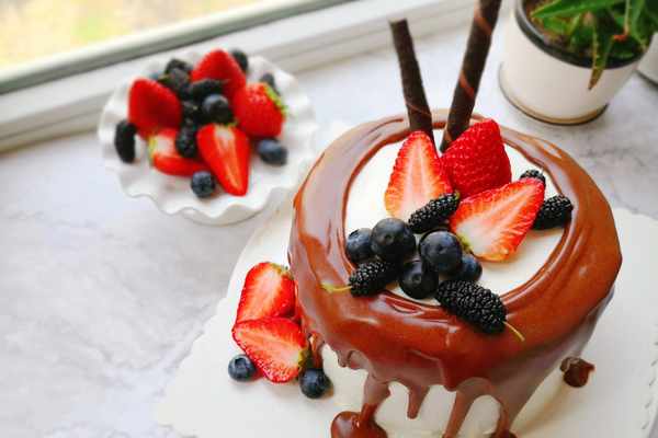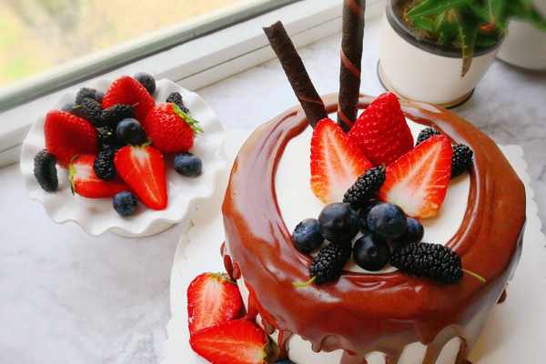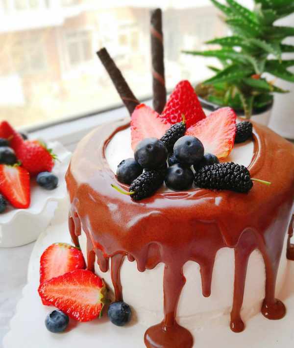 3.巧克力淋面的時候,一定要涼一些,不然容易把奶油弄化瞭,水果裝飾的時候也要擦幹水分。
