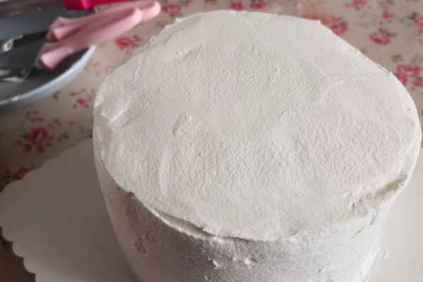 接下來就是打發淡奶油和抹面瞭,對於抹面蛋糕來說,淡奶油的打發是有區別的,通常夾心的奶油要打得硬一些,而抹面的奶油需要軟一些,這樣表面才能光滑細膩,不粗糙,但這次的蛋糕需要淋上巧克力,所以奶油一次性打發好就可以瞭,稍微硬一些也不影響美觀。